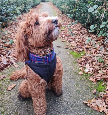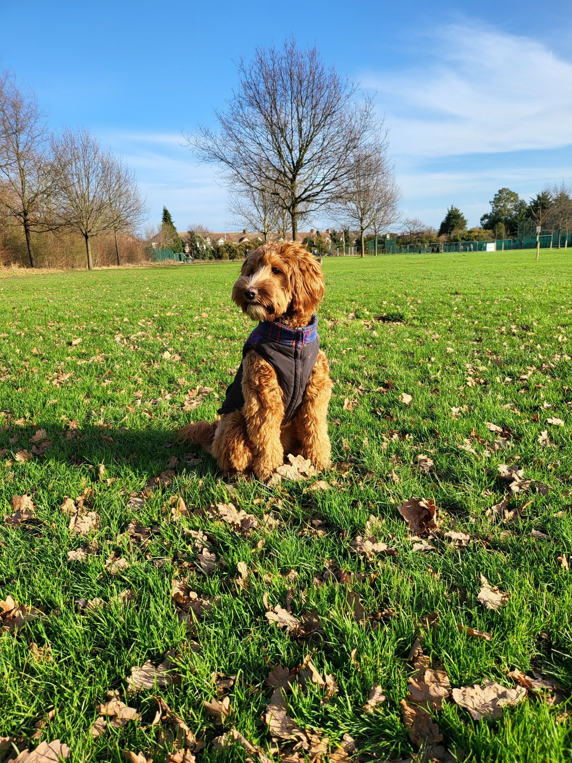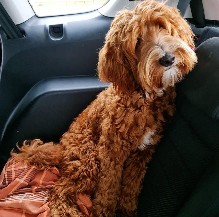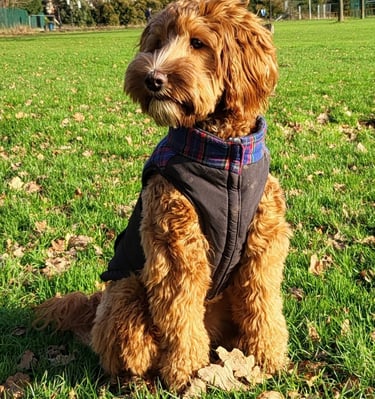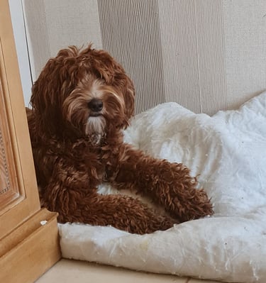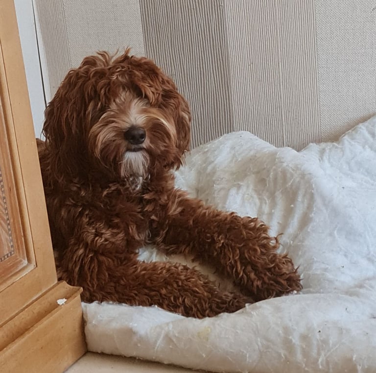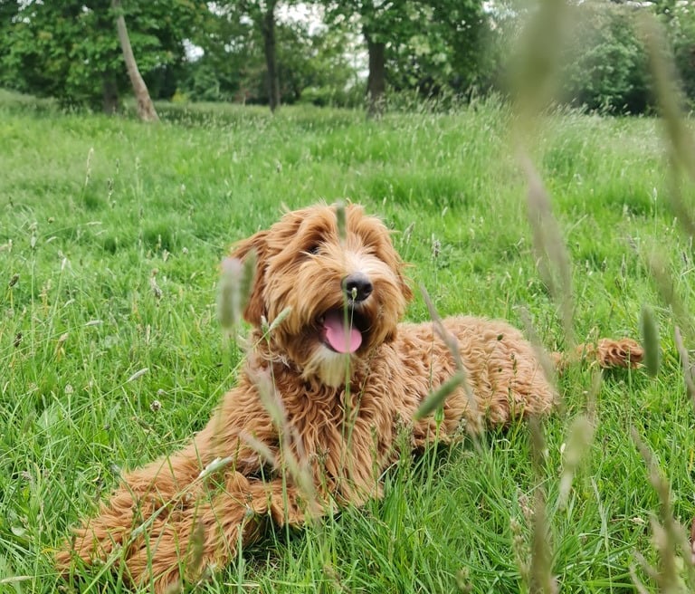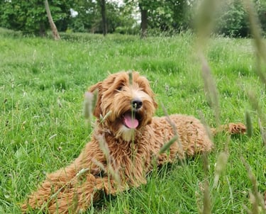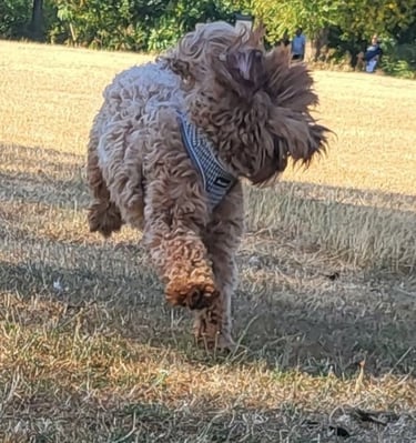 As a cherished member of our family, Couscous lives indoors with us, enjoying daily cuddles, playtime, lots of park walks, and the everyday household sounds that help produce well-adjusted puppies. She is fully health-tested (including hips, elbows, BVA eye scheme, and comprehensive DNA panel for breed-specific issues like PRA-prcd, vWD, DM, EIC, and IC - results available on request). We collaborate closely with experienced mentors, such as Daydream Doodles, to ensure ethical pairings that strengthen the multi-generation lines.