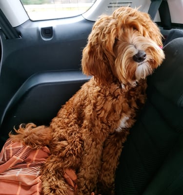 Our cherished dam shines with a bouncy personality, a warm, emotionally intuitive nature, and a soft, fleecy coat that encases her loving spirit. Couscous is the heart of DoodleBug Dynasty - a stunning Multi-generation red Australian Labradoodle with a soft, silky fleece coat that gleams in rich, warm tones. Standing at 18 inches at the shoulder, she embodies the ideal medium size: compact, athletic, and perfectly suited to family life.